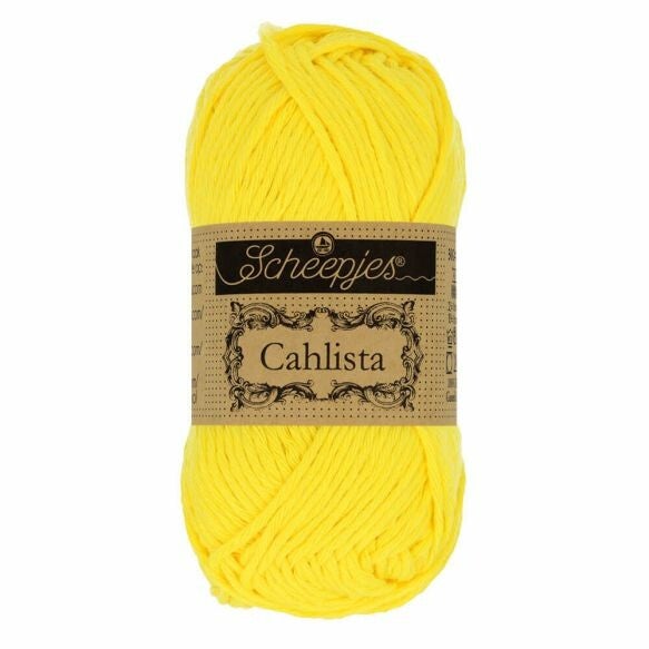 Cahlista betekent bijzonder mooi en Scheepjes Cahlista voldoet zeker aan die eigenschap. Scheepjes Cahlista is een niet-gemerceriseerd garen van 100% Natuurlijk Katoen dat dankzij de sterke twijning niet splijt, maar toch mooi soepel valt. Dit zachte en ademende garen is geschikt voor het haken of breien van uiteenlopende projecten, zoals baby- en peuterkleertjes, omslagdoeken, amigurumi of woonaccessoires. Het garen is double gassed, wat inhoudt dat eventuele overtollige katoenvezels zijn verwijderd middels een proces waarbij het garen tot twee keer toe door een vlam wordt geleid. Dat levert een buitengewoon glad garen op dat heerlijk soepel over de haaknaald of breinaalden glijdt. Scheepjes Cahlista heeft het EN 71-3 keurmerk, wat aangeeft dat dit garen veilig is in gebruik voor personen met een gevoelige huid, ook voor baby’s en kinderen. Bij de productie is gebruikgemaakt van een volledig biologische afvalwaterzuivering, waardoor het gebruikte water op een veilige manier wordt gerecycled en hergebruikt. Scheepjes Cahlista is verkrijgbaar in maar liefst 109 kleuren met dezelfde kleurnummers als die van enkele andere garenseries, zoals Scheepjes Catona, Sweet Treat en Sugar Rush, zodat ze gemakkelijk zijn te combineren. Een bol Scheepjes Cahlista weegt 50 gram en heeft een looplengte van 85 meter (garendikte Aran). De aanbevolen naalddikte is 4.50-5.00mm.